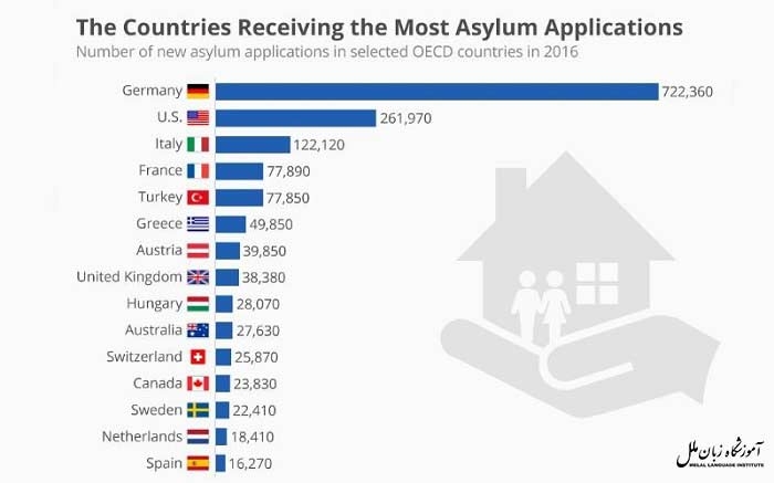 - آلمان: آلمان یکی از مقاصد محبوب برای پناهندگان ایرانی است. آنها با سیاست های پذیرش و حمایت قوی از پناهندگان، امکاناتی مانند پشتیبانی مالی، مسکن، آموزش و خدمات بهداشتی را فراهم می کنند.